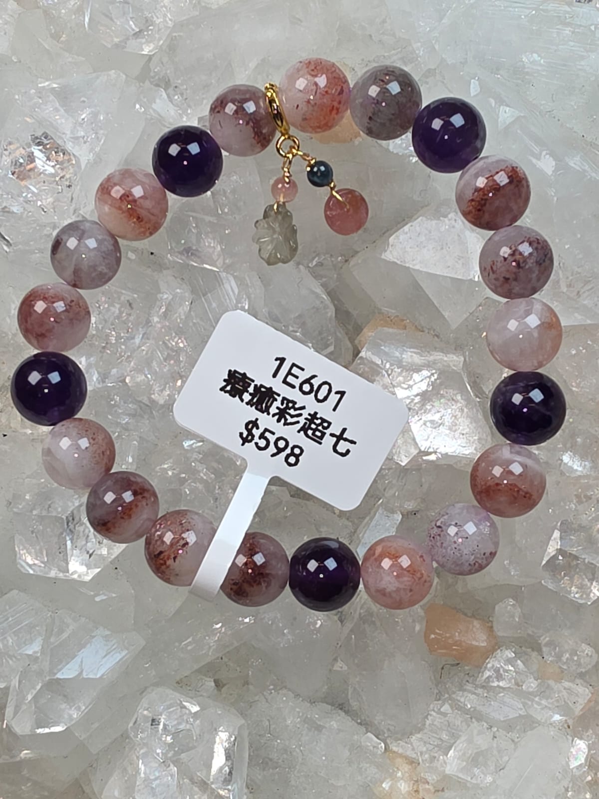 十一悦專屬【山茶花平安扣手串】療癒彩超七:含有七種共生礦物,功效全面,主要有招財、人緣、健康、愛情、靈性提升等多方面,能平衡七脈輪,放大其他水晶功效,幫助開發直覺、激發創造力、穩定情緒,適合追求全方位運勢提升者,如想招財、改善人際、增進感情、療癒身心,或需要強大能量支持者都適合佩戴。